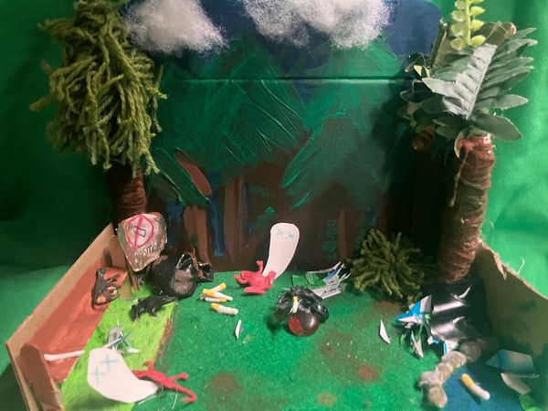 Lillian, a 14-year-old student from South Fork High School in Humboldt County, created a diorama to explore the environmental impact of tobacco waste. Through her work, she highlights how discarded cigarettes harm wildlife, using a creative 3D approach to show that even after being thrown away, tobacco products continue to cause damage. The piece serves as a reminder that leaving cigarettes behind doesn’t end their consequences—it simply passes them on to the natural world.