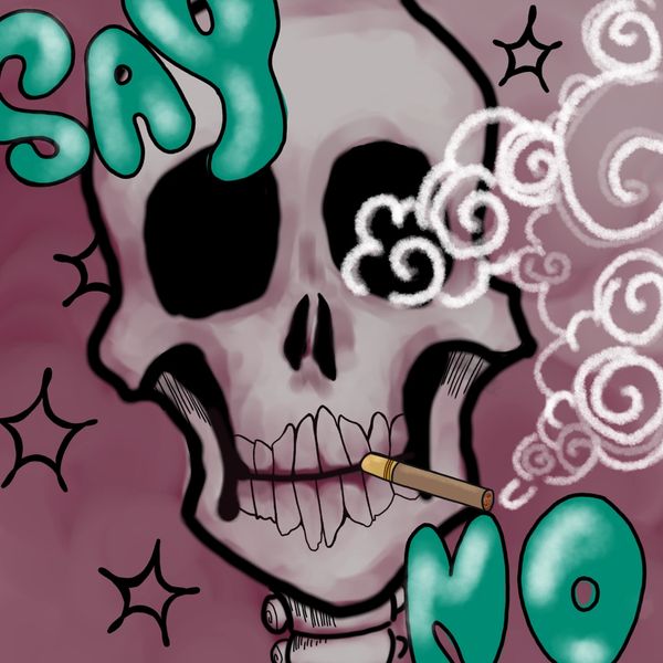 Aleah, a 16-year-old student from Casterlin High School in Humboldt County, created an emotionally resonant artwork addressing the theme of Big Tobacco's manipulation. Inspired by the memory of her great aunt, who passed away from bone cancer after a lifetime of smoking, Aleah’s piece illustrates how tobacco can hook individuals for life and lead to devastating health consequences. The haunting image of a skull in the smoke is especially striking, capturing the fatal grip of addiction and the manipulative power of the industry behind it.