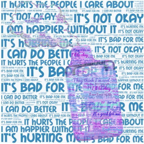 Kara-Mae, a 14-year-old student from Eureka Senior High, explores the topic of Big Tobacco’s manipulation through a bold digital art piece. Her work reveals how tobacco companies use bright, attractive ads to cover up the harm their products cause. One of the most striking parts of her design is a vape pen that shows two sides of the story: on the outside, hard truths and warnings about addiction, and on the inside, the quiet, convincing thoughts people tell themselves to keep using. The piece invites viewers to look beyond surface messaging and consider the deeper impact of tobacco marketing.